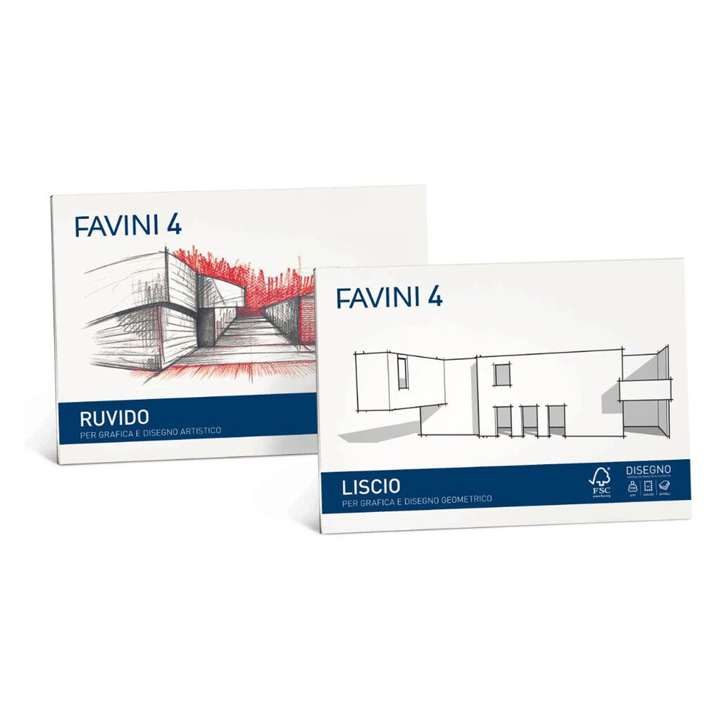 Blocco di carta per disegno Favini 4: formato 24 X 33 cm, foliazione 20 fogli, superficie liscia, blister da 5 pezzi