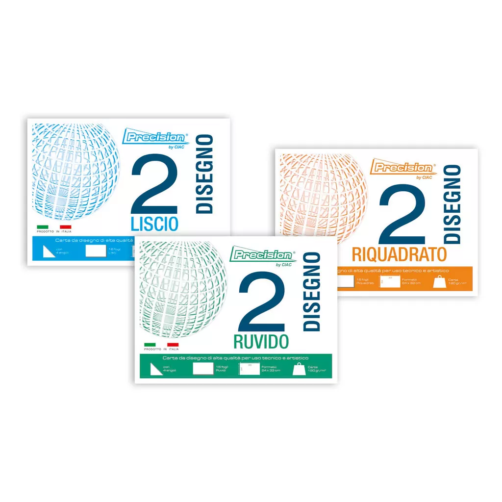 Carta per il disegno CIAC Precision 4: formato 33 X 48 cm, foliazione 20 fogli, superficie liscia, rilegatura a blocco