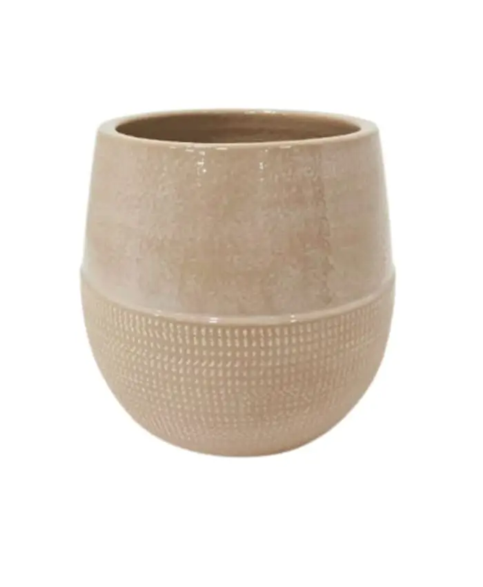 Vaso cermica beige profilo ovale liscio zigrinato cm 16 h14